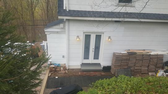 You can see the earlier novelty wood siding at the area where there is missing and damaged asbestos siding.