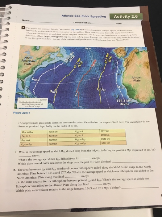 Atlantic sea floor spreading activity 2 6 the map of the northers atlantic ocran basin g az of equal age of the basaltic e the sediments that have accumulased on the seafloor thse sochuroms were derived by maria scton and her olgues 012 from an analysis of marine magnetic anomalics and their ages are based on the gromagnetic polariey time scale.