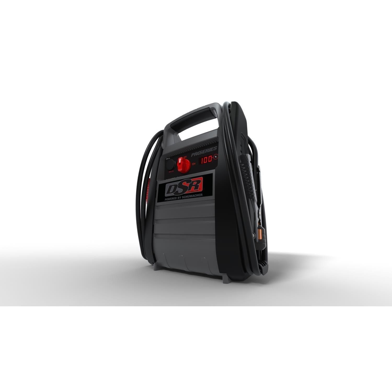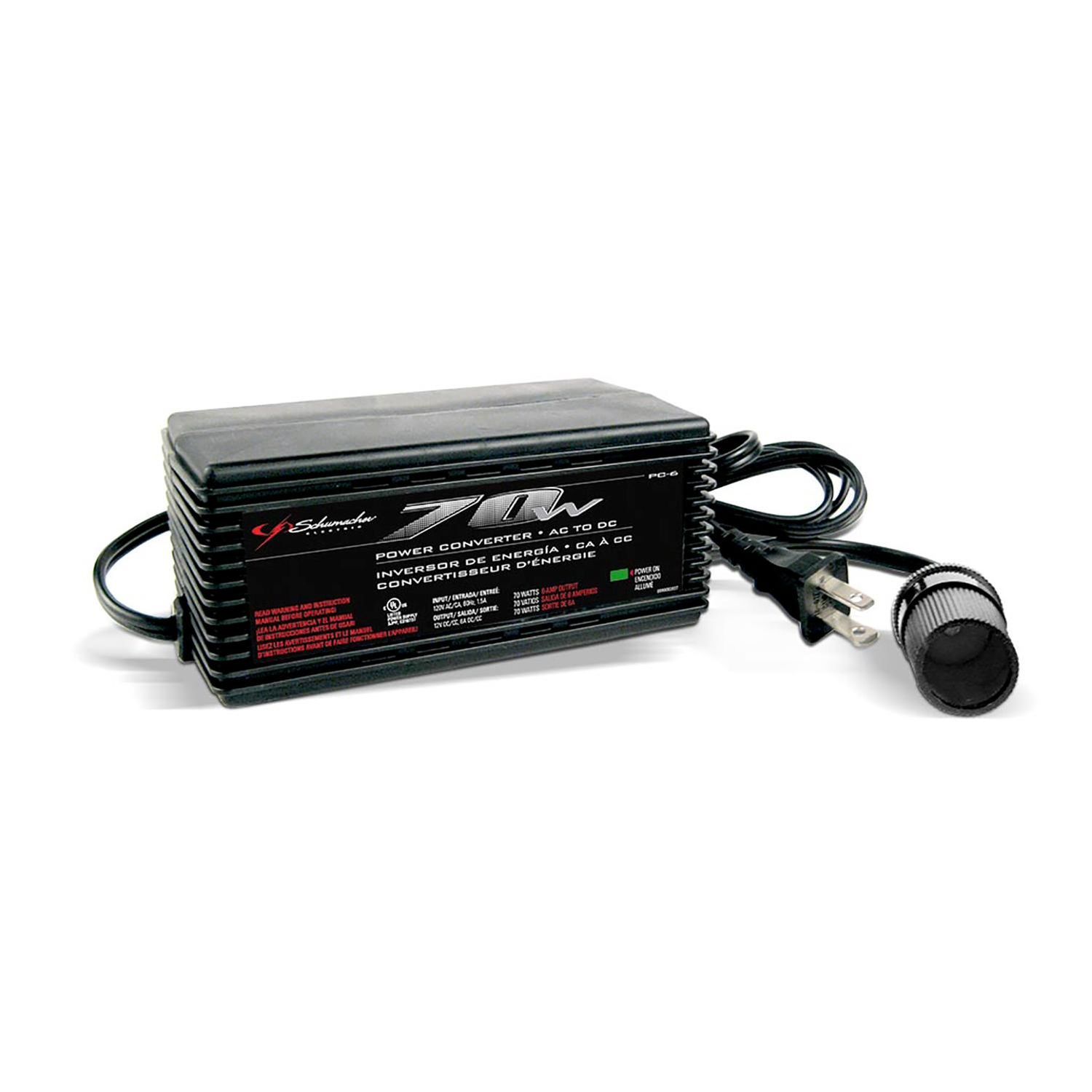 Schumacher 1500 watt power inverter converts 12v battery power to 120v ac household power.