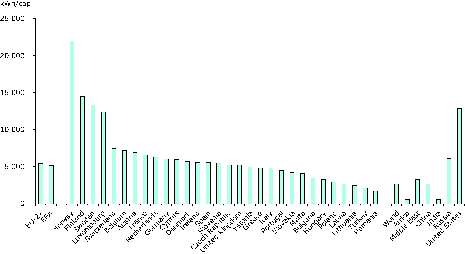 The per capita data for many countries may be slightly inaccurate as population data may not be for the same year that the consumption data are.